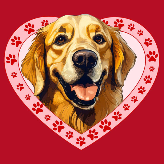 Golden Retriever (Dark Golden) Illustration In Heart - Adult Unisex T-Shirt