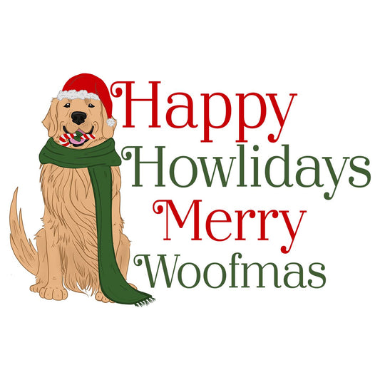 Golden Retriever Happy Howlidays Text - Adult Unisex T-Shirt