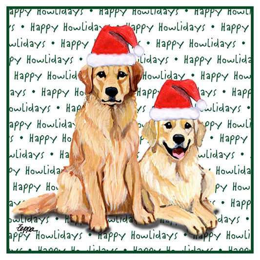 Golden Retriever Pair Happy Howlidays Text - Adult Unisex T-Shirt