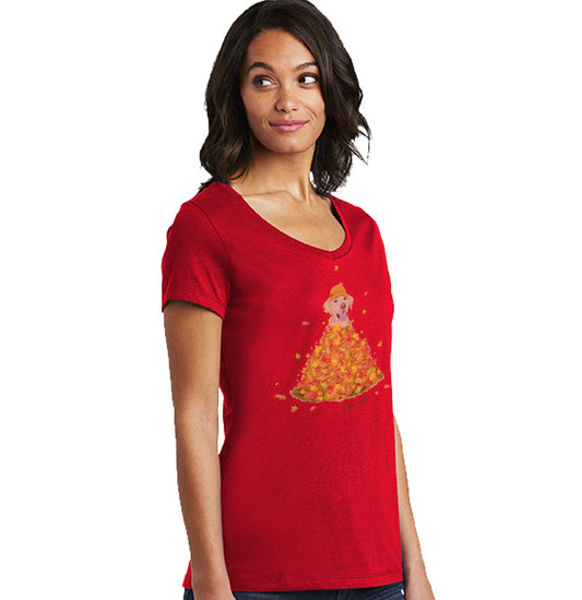 Leaf Pile and Yellow Lab - Women's V-Neck T-Shirt