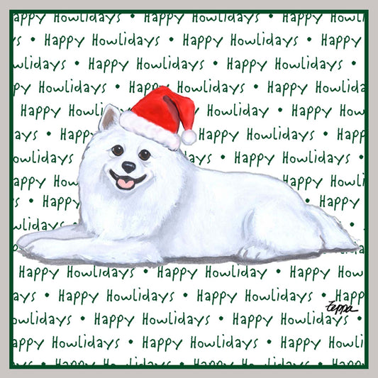 American Eskimo Dog Happy Howlidays Text - Adult Unisex Hoodie Sweatshirt