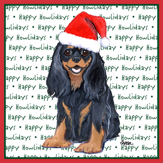 Cavalier King Charles Spaniel (Black & Tan) Happy Howlidays Text - Adult Unisex Long Sleeve T-Shirt