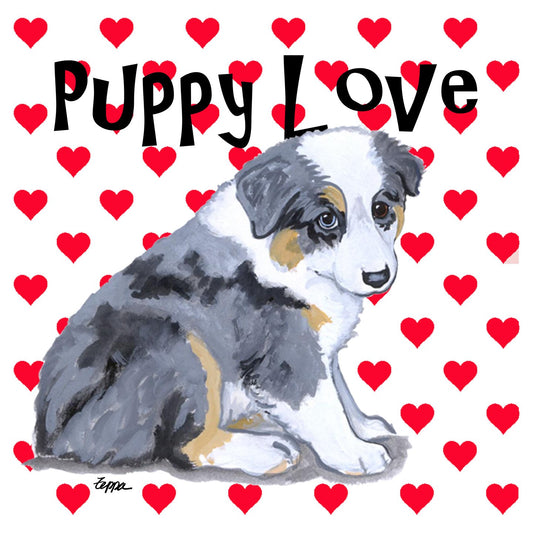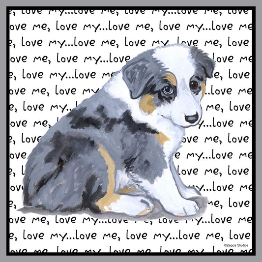 Australian Shepherd Puppy Love Text - Adult Unisex T-Shirt