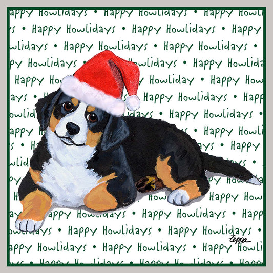 Bernese Mountain Dog Puppy Happy Howlidays Text - Adult Unisex Hoodie Sweatshirt