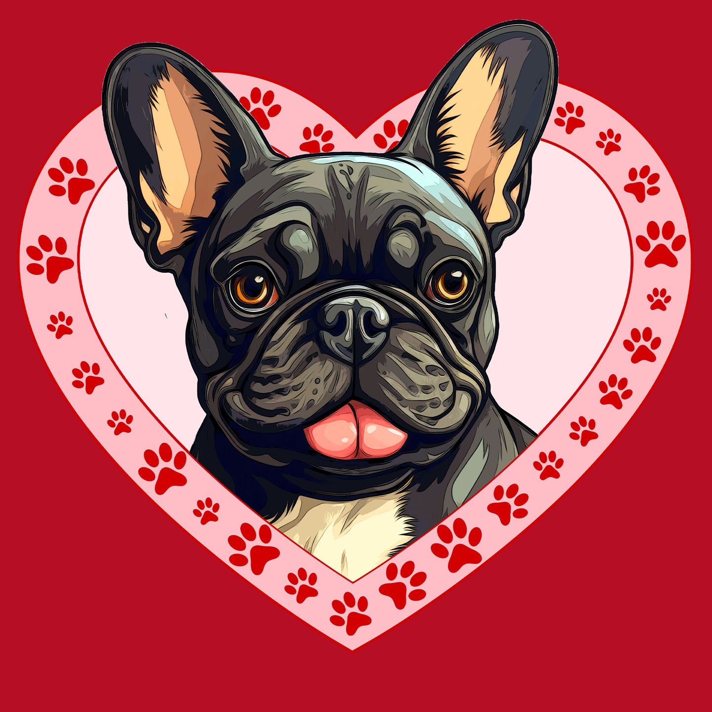 French Bulldog (Black & White) Illustration In Heart - Women's V-Neck T-Shirt