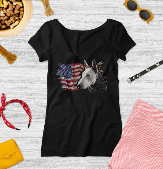 Patriotic Bull Terrier American Flag - Women's V-Neck T-Shirt