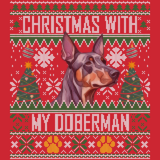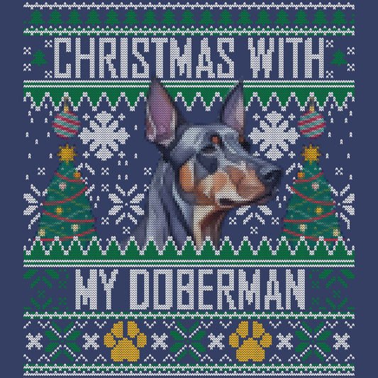 Ugly Sweater Christmas with My Doberman Pinscher - Adult Unisex Crewneck Sweatshirt