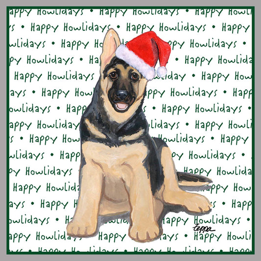 German Shepherd Puppy Happy Howlidays Text - Adult Unisex Hoodie Sweatshirt