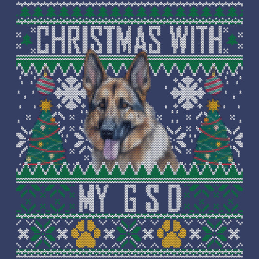 Ugly Sweater Christmas with My German Shepherd Dog - Adult Unisex Long Sleeve T-Shirt