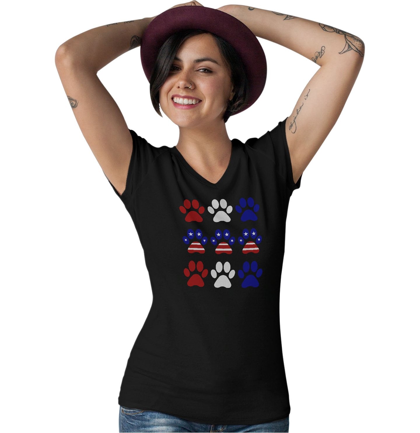 Patriotic Paws - Women's V-Neck T-Shirt