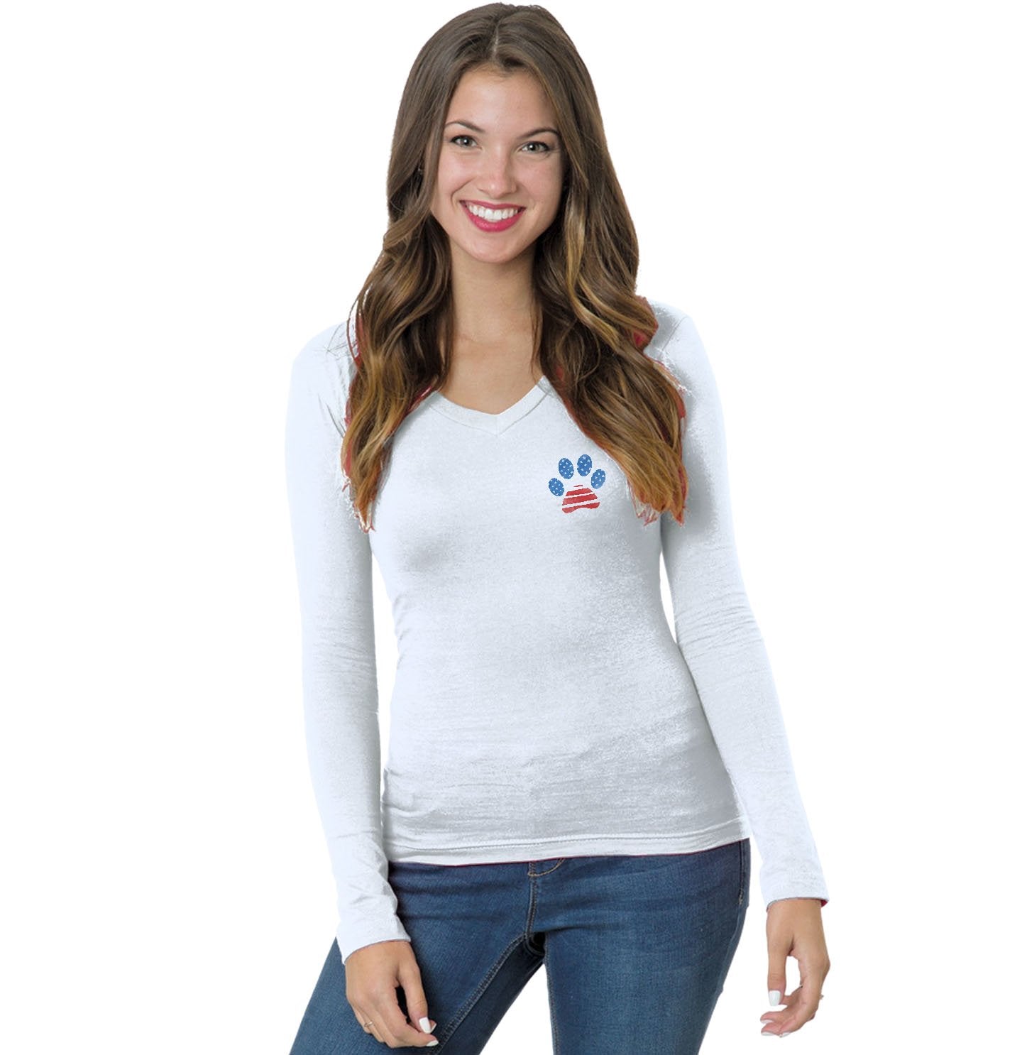 Pawtriotic Pawprint - Women's V-Neck Long Sleeve T-Shirt
