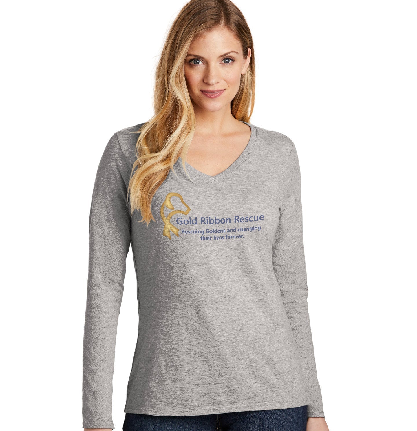 Gold Ribbon Logo - Women's V-Neck Long Sleeve T-Shirt