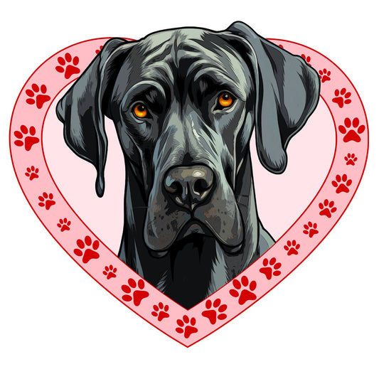 Great Dane (Black) Illustration In Heart - Adult Unisex T-Shirt