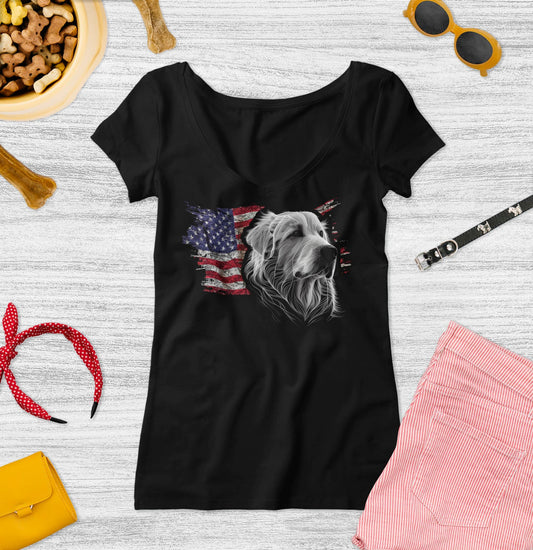 Patriotic Great Pyrenees American Flag - Women's V-Neck T-Shirt