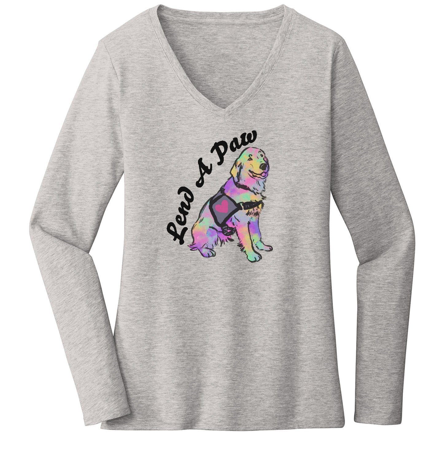 Lend a Paw Golden Retriever - Women's V-Neck Long Sleeve T-Shirt