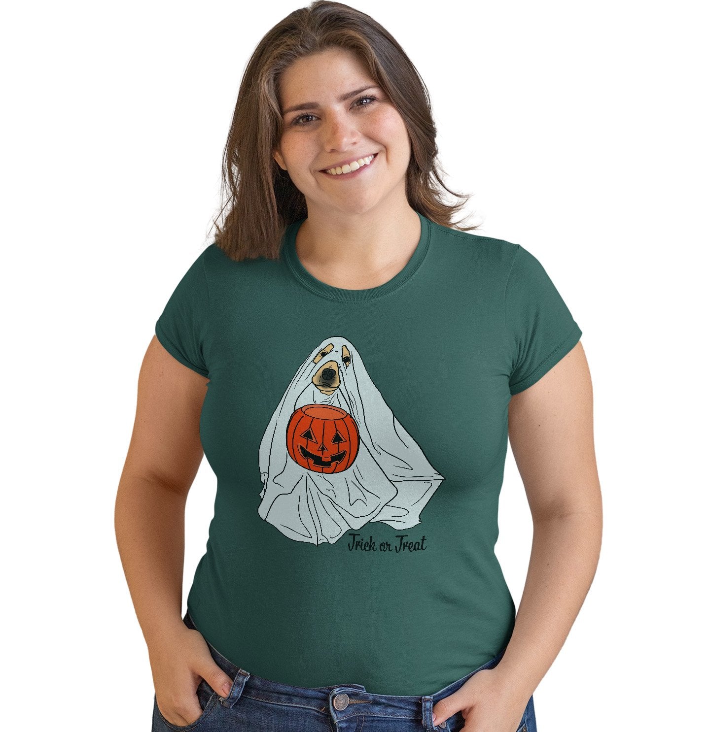Trick or Treat Ghost Dog - Women's Fitted T-Shirt