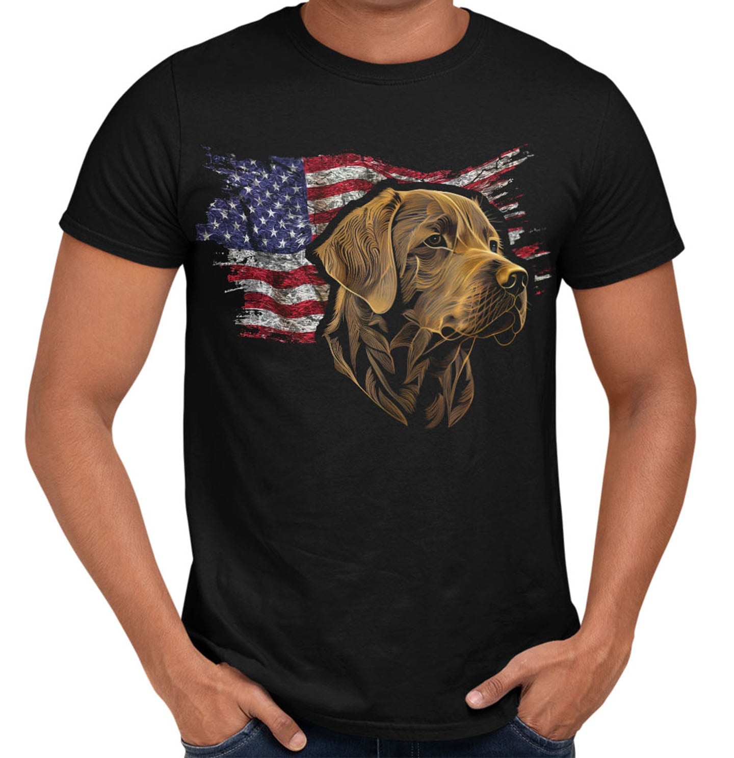 Patriotic Golden Retriever American Flag - Adult Unisex T-Shirt