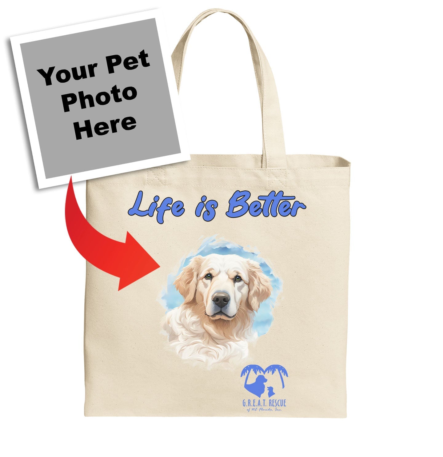 Life is Better With My GREAT Rescue Rescue Pet - Personalized Custom Cotton Canvas Tote