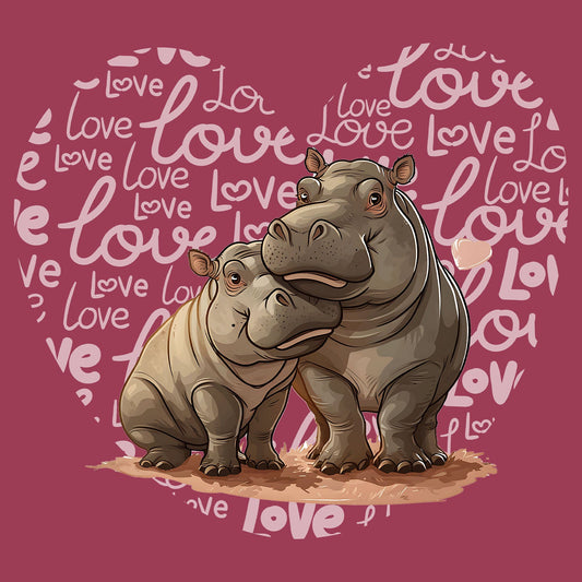 Hippopotamus Love Heart - Adult Unisex T-Shirt