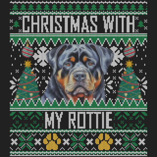 Ugly Sweater Christmas with My Rottweiler - Adult Unisex Long Sleeve T-Shirt