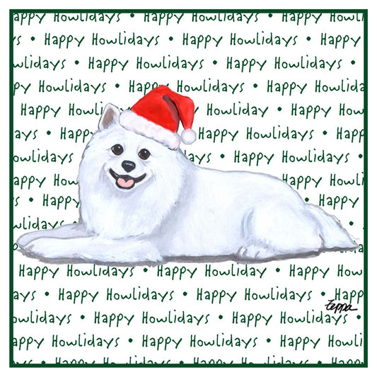 American Eskimo Dog Happy Howlidays Text - Adult Unisex Crewneck Sweatshirt