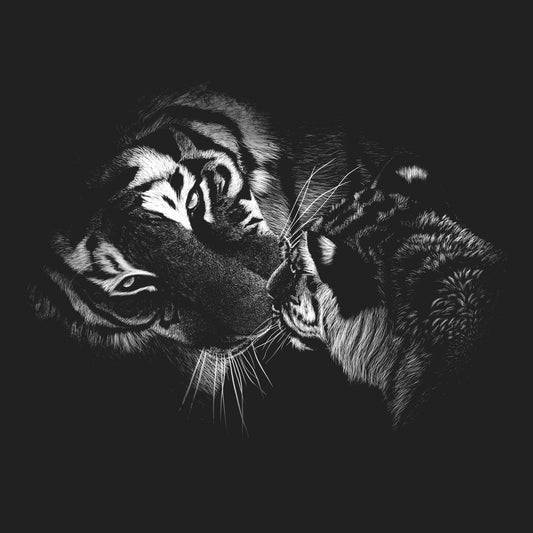 Close-up Tiger and Cub on Black - Kids' Unisex T-Shirt