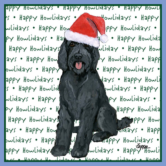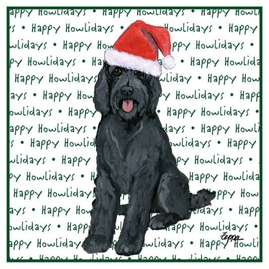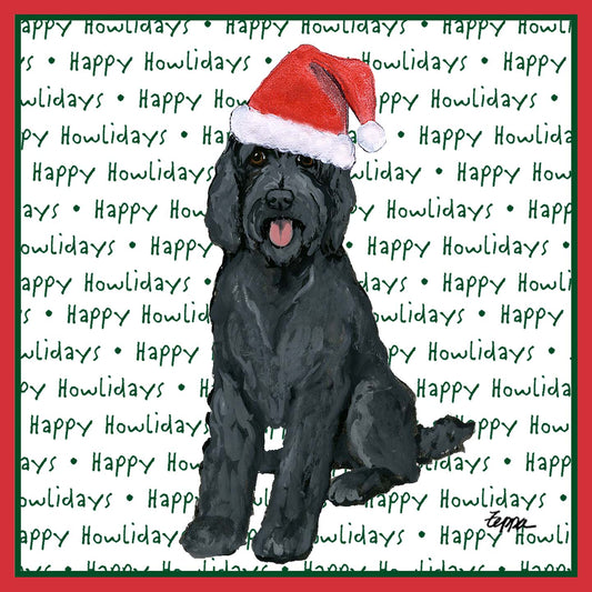 Black Labradoodle Happy Howlidays Text - Adult Unisex Hoodie Sweatshirt