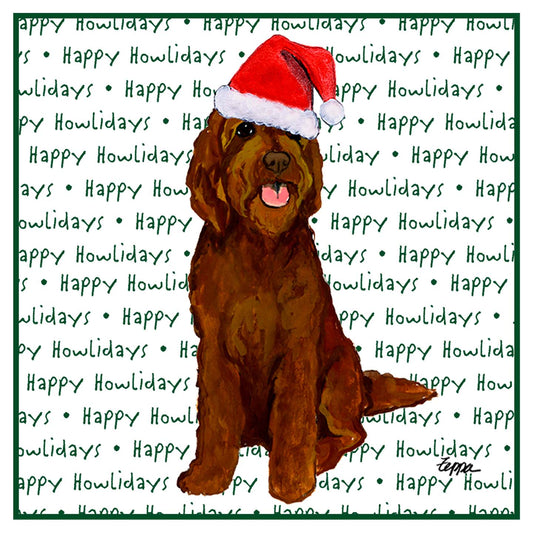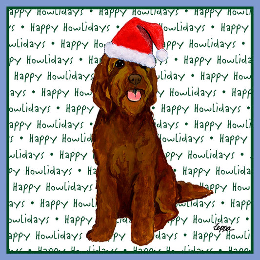 Chocolate Labradoodle Happy Howlidays Text - Adult Unisex Hoodie Sweatshirt