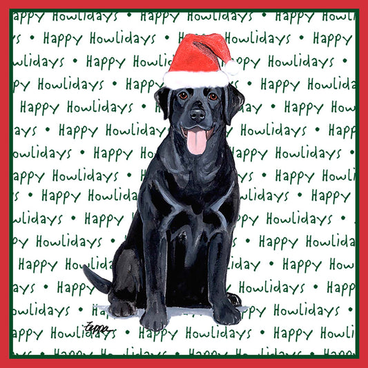 Black Labrador Retriever Happy Howlidays Text - Adult Unisex Hoodie Sweatshirt