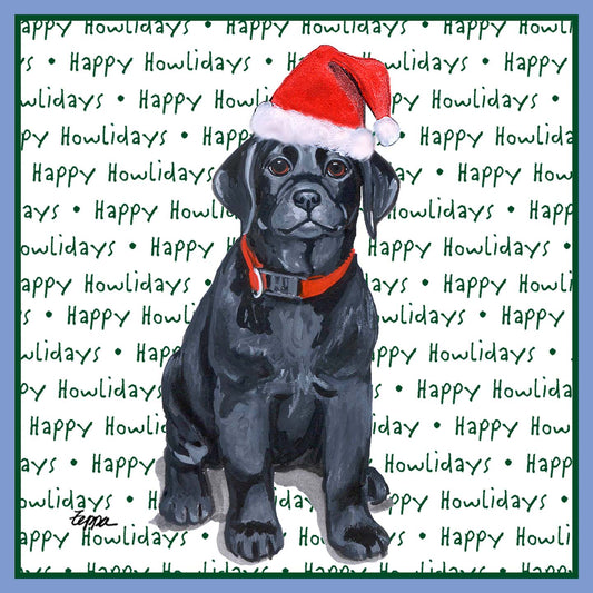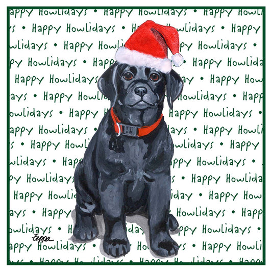 Black Labrador Retriever Puppy Happy Howlidays Text - Adult Unisex Hoodie Sweatshirt