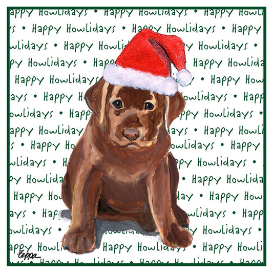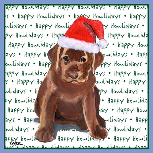 Chocolate Labrador Retriever Puppy Happy Howlidays Text - Adult Unisex Hoodie Sweatshirt