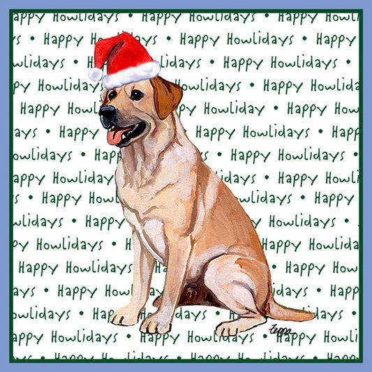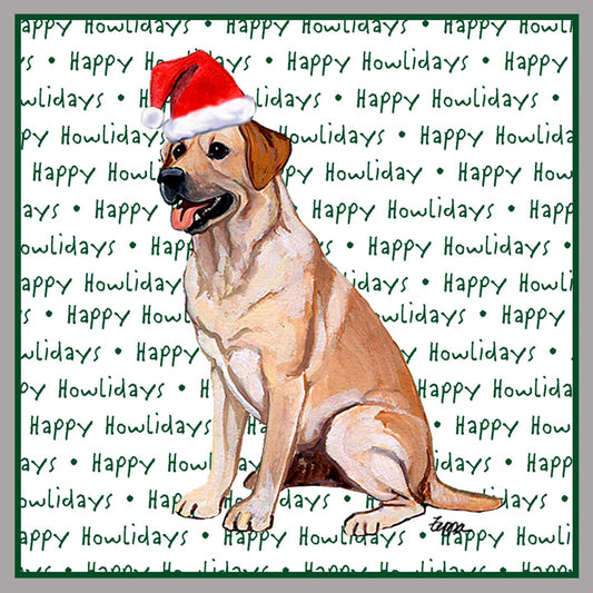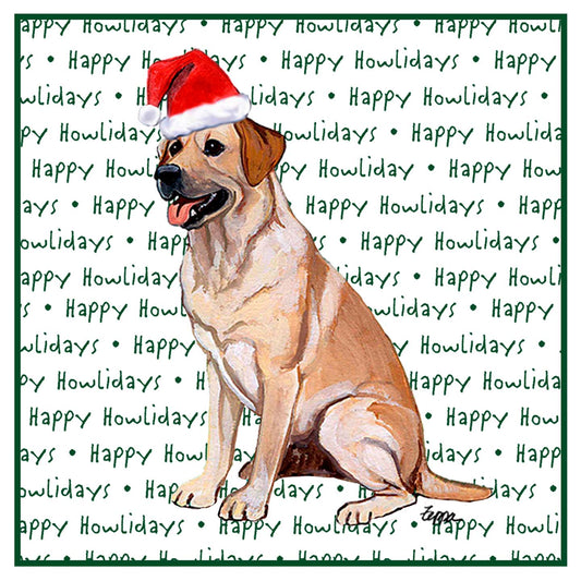 Yellow Labrador Retriever Happy Howlidays Text - Adult Unisex Hoodie Sweatshirt
