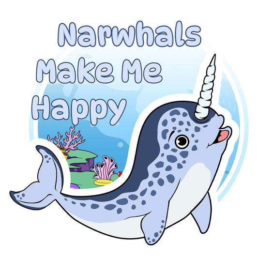 Narwhal Toon Make Me Happy - Adult Unisex T-Shirt