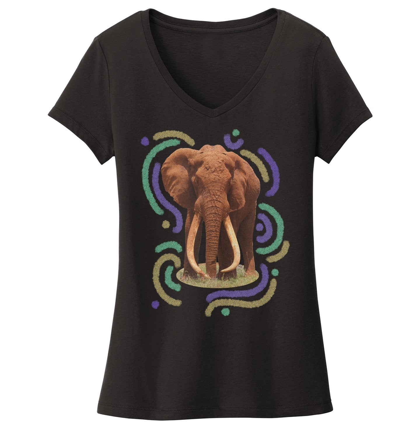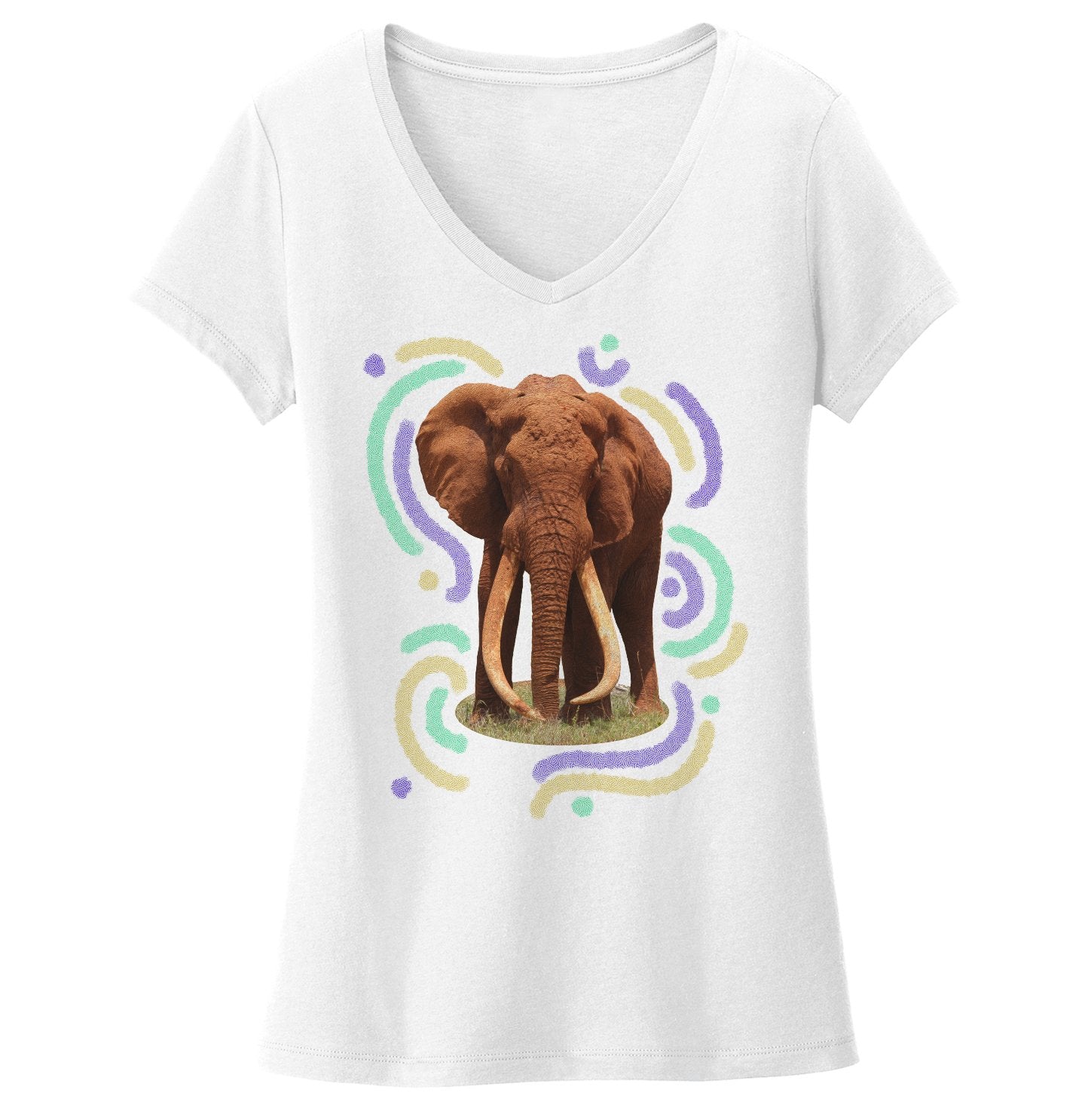 Wiggly Lines Elephant - Women's V-Neck T-Shirt