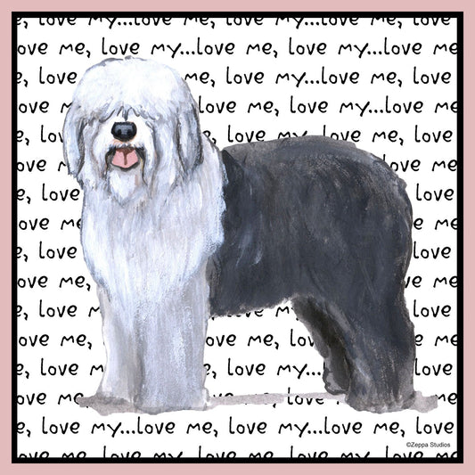 Old English Sheepdog Love Text - Adult Unisex T-Shirt