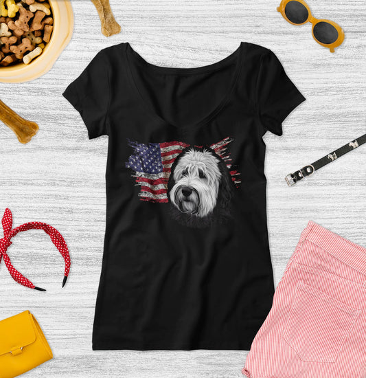 Patriotic Old English Sheepdog American Flag - Women's V-Neck T-Shirt