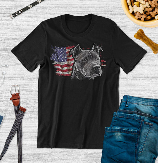 Patriotic American Staffordshire Terrier American Flag - Adult Unisex T-Shirt