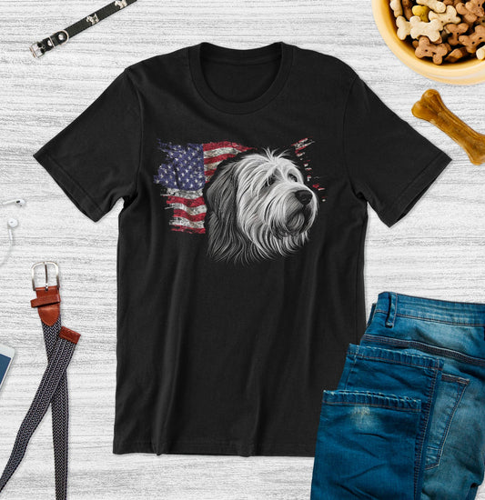Patriotic Polish Lowland Sheepdog American Flag - Adult Unisex T-Shirt