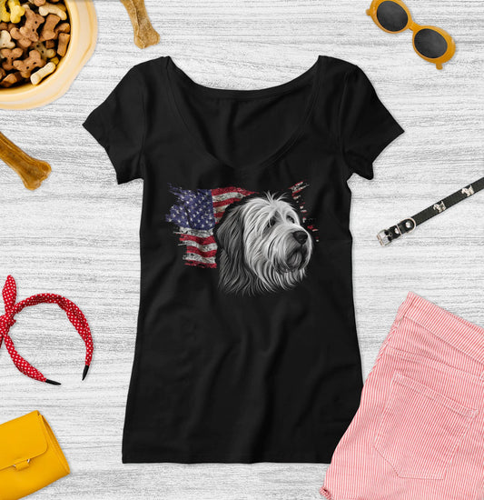 Patriotic Polish Lowland Sheepdog American Flag - Women's V-Neck T-Shirt