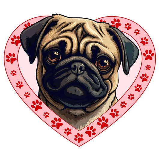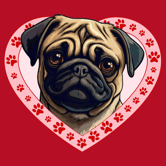 Pug Illustration In Heart - Adult Unisex T-Shirt