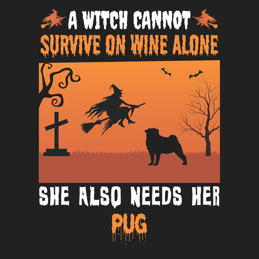 A Witch Needs Her Pug - Adult Unisex T-Shirt