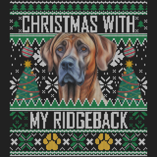 Ugly Sweater Christmas with My Rhodesian Ridgeback - Adult Unisex Long Sleeve T-Shirt