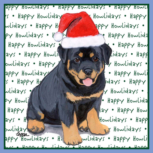 Rottweiler Puppy Happy Howlidays Text - Kids' Unisex T-Shirt