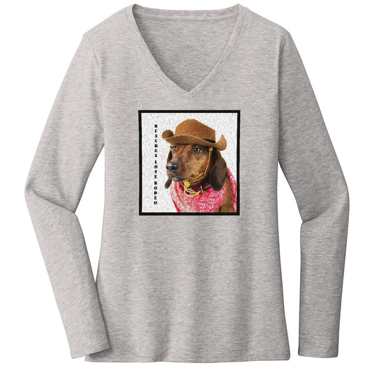 Rodeo Dachshund - Women's V-Neck Long Sleeve T-Shirt