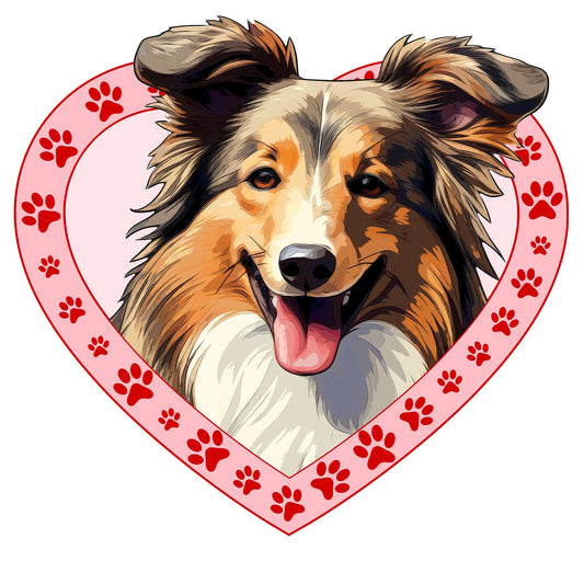 Shetland Sheepdog Illustration In Heart - Adult Unisex T-Shirt