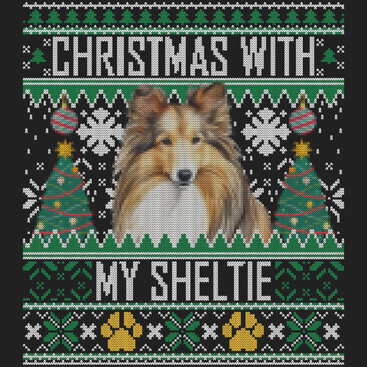 Ugly Sweater Christmas with My Shetland Sheepdog - Women's V-Neck Long Sleeve T-Shirt