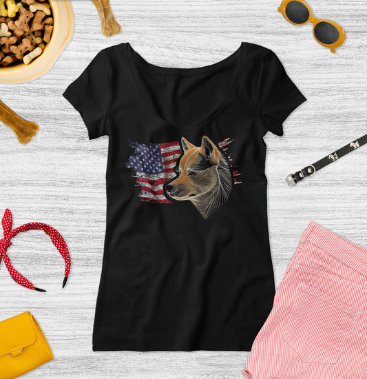 Patriotic Shiba Inu American Flag - Women's V-Neck T-Shirt