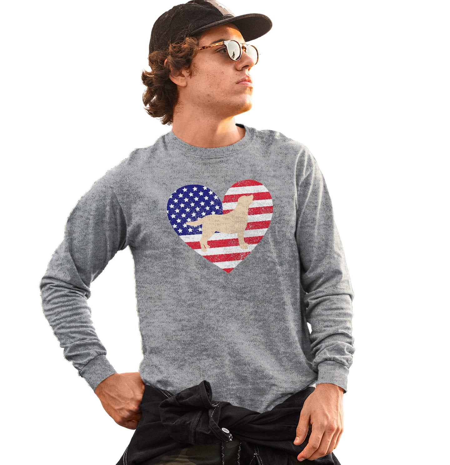 USA Flag Yellow Lab Silhouette - Adult Unisex Long Sleeve T-Shirt
