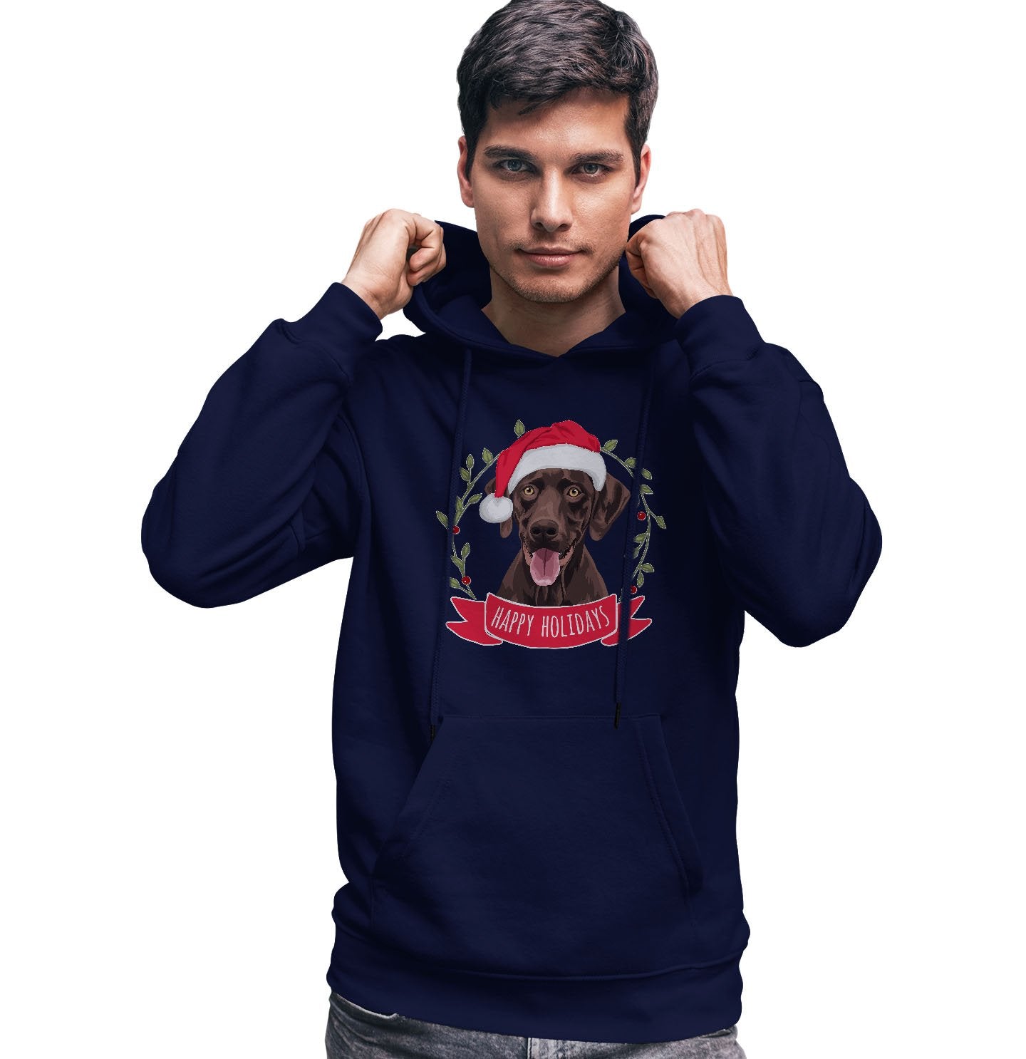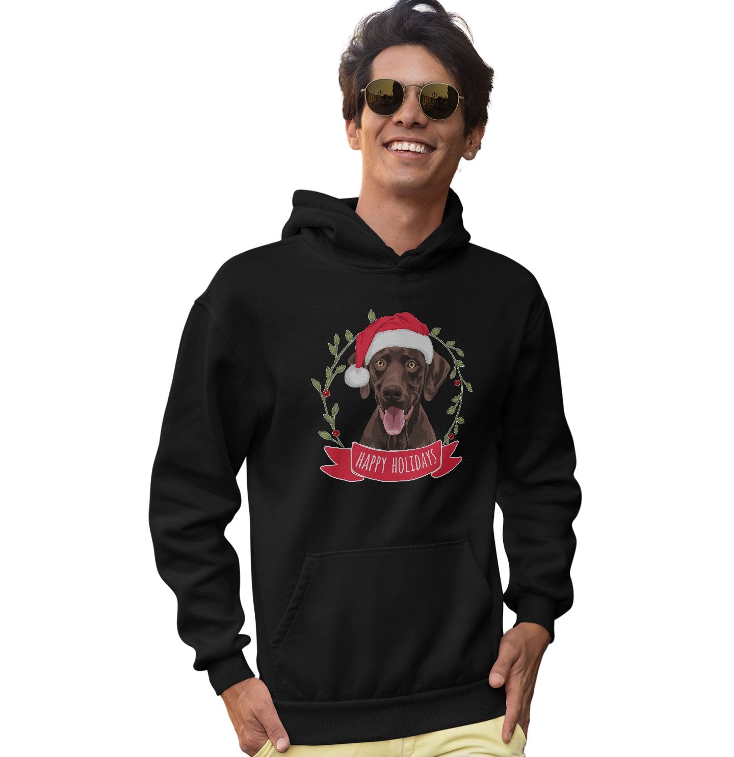 Happy Holidays Chocolate Lab - Adult Unisex Hoodie Sweatshirt