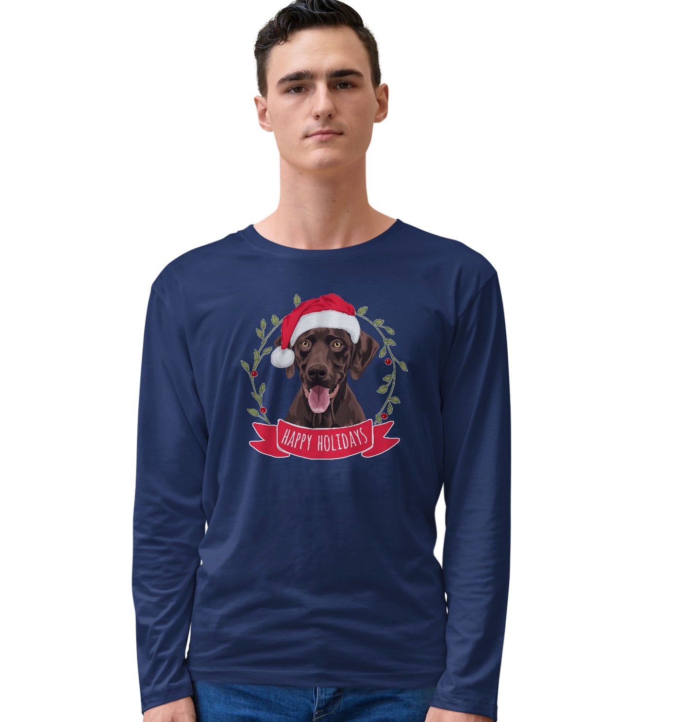 Happy Holidays Chocolate Lab - Adult Unisex Long Sleeve T-Shirt
